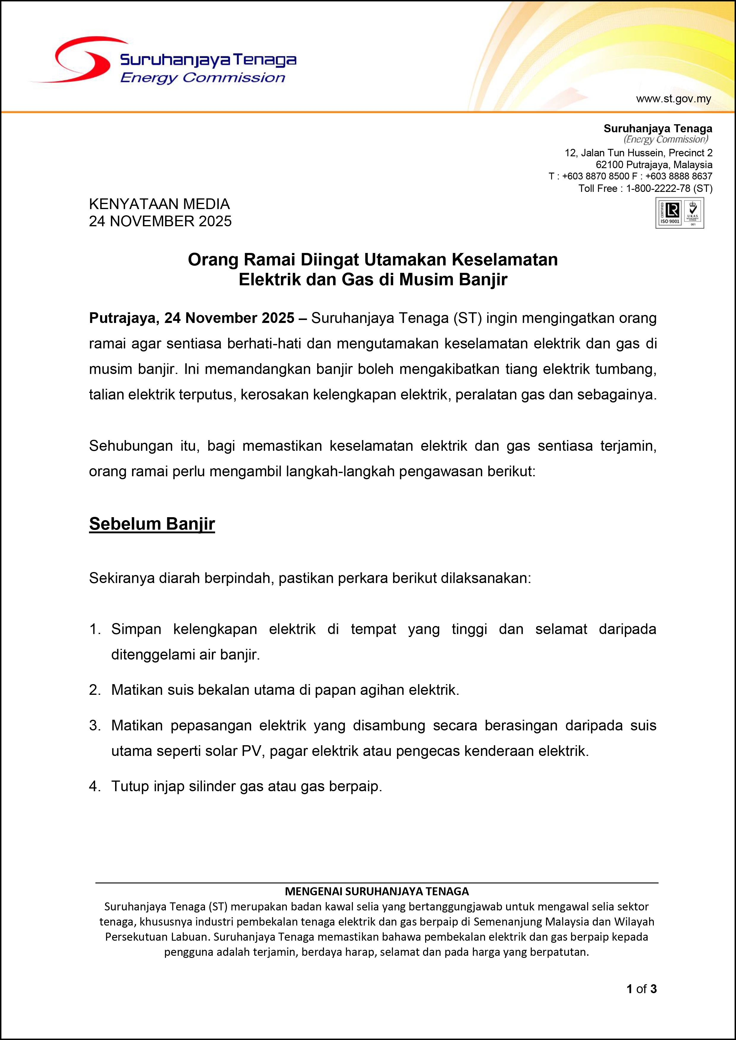 Energy Commission,No. 12, Jalan Tun Hussein, Precinct 2, 62100 Putrajaya, Malaysia.