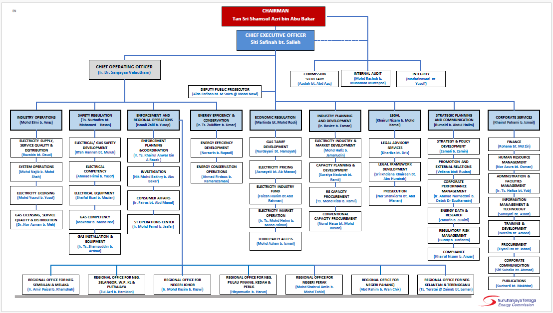 The governance of the Energy Commission is entrusted to its Chairman and the Commission members who are responsible to the Minister in charge of energy. The roles and functions of the Energy Commission are executed by the various Departments, Units and seven (7) regional offices.
