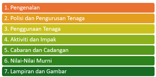 Kandungan format laporan kecekapan tenaga adalah seperti berikut: