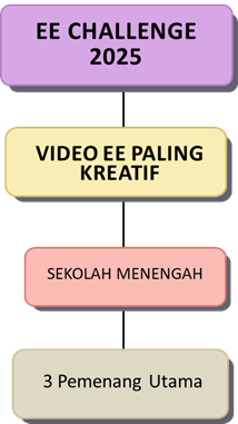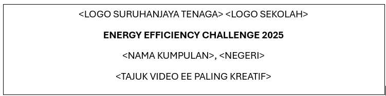 - Kandungan video adalah berkenaan objektif penyertaan Sekolah Paling EE dan aktiviti – aktiviti kecekapan tenaga yang dijalankan di sekolah masing-masing dalam tempoh pertandingan dari bulan Mei 2025 sehingga Ogos 2025.