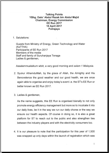 | 367 | Speech Text: Opening Address by YB Dato’ Sri Peter Chin Fah Kui, Minister of Energy, Green Technology and Water Malaysia (KeTTHA) at the “Fourth National Energy Forum 2012”, 27 September 2012 | 17/04/2013 |