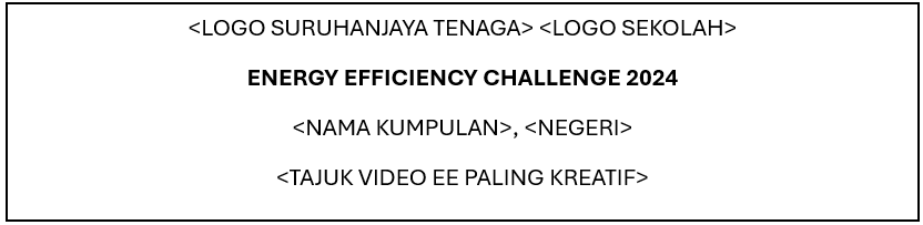 - Kandungan video adalah berkisarkan objektif penyertaan Sekolah Paling EE dan aktiviti – aktiviti kecekapan tenaga yang dijalankan di sekolah masing-masing dalam tempoh pertandingan dari bulan Jun sehingga September 2024.
