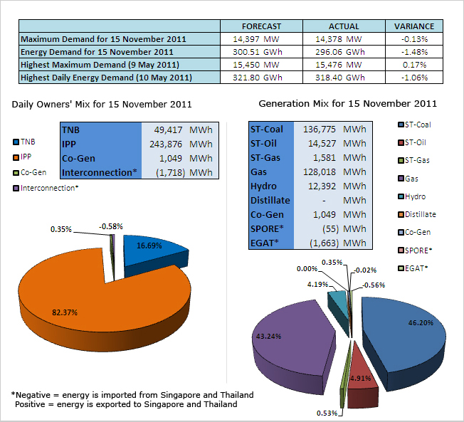 Daily Owners' Mix and Generation Mix Profile for November 2011
