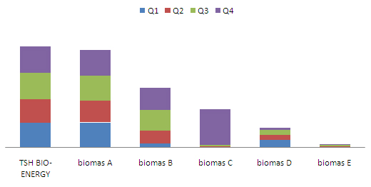 {tip Info::Loji janakuasa TSH Bio-Energy merupakan antara yang terawal dan paling lama beroperasi iaitu sejak Februari 2005. Namun demikian iainya masih mampu berupaya untuk menjana elektrik dengan jumlah penjanaan iaitu sebanyak 85,731.17 MWj iaitu hampir menyamai loji janakuasa Biomas A. Pembekalan bahanapi yang terjamin merupakan faktor utama TSH berupaya untuk menjana elektrik pada tahap optimum. Loji janakuasa E yang merekodkan penjanaan yang paling sedikit berbanding loji lain bukannya mengalami masalah bahan api. Sebaliknya kemudahan di loji berkenaan seperti tempat penyimpanan bahan api yang sempit dan terdedah kepada hujan telah menyebabkan loji ini terpaksa menghentikan operasinya. EFB yang disimpan pada ruang terbuka dan berbumbung lut cahaya pada asalnya bertujuan mengeringkan bahan api secara semula jadi sebaliknya telah mendatangkan masalah kepada loji ini.} {/tip} |